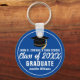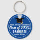 This modern blue and white custom Class of 2026 graduate keychain features your high school or college name. Customise with your graduating student name under the chic handwritten script and black grad cap for a great personalised graduation key chain gift.