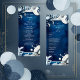 blue & white coastal vibe wedding program & menu