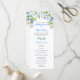 Blue and white country daisy floral wedding program. This cornflower blue and white daisies wedding program is a good choice for a summer wedding or a spring wedding. This chamomile daisy or shasta daisy flower wedding program features beautiful watercolor white petal daisy with yellow centre bouquets with blue flowers and green leaves. This affordable country daisy wedding program has a great country look, so it's perfect for a country style wedding.
