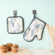Blue White Cream Abstract Wedding Oven Mitt & Pot Holder Set