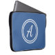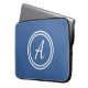 Laptop case with a blue background and white custom monogram first initial.