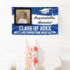 Royal Blue and white high school or college colours. Big giant yard sign or indoor/outdoor banner, Congratulations to the graduate of the class of (your year). Customise this personalised yard banner sign with your graduate's photo, name, year and school or other custom text. Personalised outdoor or indoor graduation party sign banner with your graduate's year, name, high school. Spectacular way to congratulate the graduate and welcome family and guests to your graduation party .