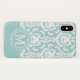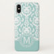 Fancy White damask pattern on eggshell blue Customisable Background Elegant vintage French wedding baroque brocade damask pattern. Click Customise it to change the background colour from blue to any colour you like or just personalise with your initial and you are ready to go .