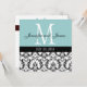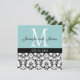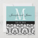 Blue White Damask Monogram Wedding Invitation