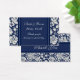 Wedding favour tag in elegant dark navy blue and cream off white floral damask design, also available in many matching wedding products.