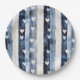 Blue White Denim Heart Stripes Birthday Paper Plate