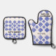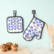 Blue White Diamond Check Oven Mitt & Pot Holder Set