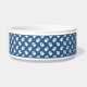 White dog paw print pattern on a blue background colour. There is also a personalizable text area for a name.