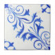 Blue White Farmhouse Rustic Scroll n Leaf Pattern Ceramic Tile