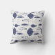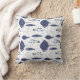 Blue White Fishes Pattern on Wavy Fishing Net Cushion