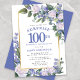 Blue White Floral 100th Birthday Surprise Party Invitation