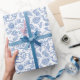 Blue White Floral Botanical Boho Pattern Whimsical Wrapping Paper