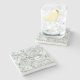 The coasters are gorgeous, a quality feel and heavy weight. They look like a precious archeological find. A rustic stone juxtaposed with a modern floral black and white print. I like the way the print goes slightly imperfect on the cut stone edges giving them a kind-of natural beauty.