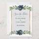 Blue & White Floral Elegant Script Gold Wedding Save The Date