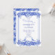 This invitation is reminiscent of antique china and simpler times. It's pattern echoes the patterns used on fine English china and stoneware. Multiple shades of blue are serene and elegant. The back of the invitation repeats the beautiful blue floral pattern. This invitation is part of the Blue & White Floral Porcelain Wedding Invitation Suite cards created by Simply Farmhouse Press.