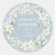 Blue + White Floral Wreath Easter Message Classic Round Sticker