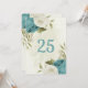 Beautiful romantic table number card featuring blue and white flowers and some pretty green leaves .