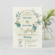 blue white flowers greenery wedding invitation