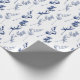 A simple blue and white floral pattern wrapping featuring hand-painted Delft blue delicate flowers on a stem against a pure white background.