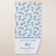 Beautiful bath towel in blue and white with a floral pattern of forget-me-not flowers. Add family name too in elegant blue letters.