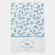 Beautiful shabby chic kitchen towel, perfect for the cottage, in blue and white with a floral pattern of forget-me-not flowers. Add family name too in elegant blue letters curved over a forget-me-not twig.