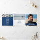 Blue white Funeral service mono custom photos Tri-Fold Programme