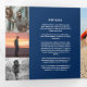 Simple modern graphic funeral program square shaped in a dark blue and white. Replace the sample text and twelve placeholder photos with your own special photos and memorial order of service, obituary, reading or poem, and acknowledgements, special quote and personal information details. Other matching funeral keepsake remembrance items are available. This is idea for surfers and lovers of the sea. Design by www.mylittleeden.com
