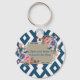 Blue/White Geometric Design Floral Key chain