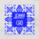 Blue & White Geometric Modern Pattern Square Business Card