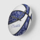 This cute basketball wall clock features the realistic image of a basketball that has alternating blue and white recolored panels with delicate doodle flowers, feathers and paislies patterned on the basketball's blue panels - personalise with the athlete's name for her basketball room - by katz_d_zynes