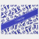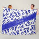 This cute volleyball team colours fleece blanket for girls features a pattern of varied size stylised blue and white volleyballs turned every which way overlying a volleyball net detail graphic - the volleyballs' blue panels are blended with an artsy, girly floral pattern - personalise her name in a sophisticated handwritten font on a bold, angled, full width blue colour strip - white background and blue colour strip are customisable - by katz_d_zynes