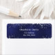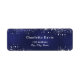A deep blue background, the blue colour is uneven. Decorated with faux glitter dust. Personalise and add your name and address.White letters.