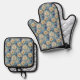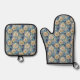 Blue White Gold Christmas Poinsettias Oven Mitt & Pot Holder Set