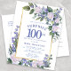 Blue White Gold Floral 100th Surprise Birthday Invitation Postcard