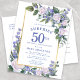 Blue White Gold Floral 50th Surprise Birthday Invitation Postcard