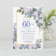 Honour a special woman with this elegant and feminine 60th Birthday party invitation. 60th is written in large blue text. Birthday celebration follows. The honoured guest's name is also in blue capital letters. The remainder of the text is soft dove grey. The birthday celebration details are surrounded by a chic gold frame that is decorated with white roses and blue flowers. The floral elements are nestled in deep green leaves. While it is a traditional design, the open and airy botanical foliage and text give it a contemporary vibe. The invitation back is a deep blue.