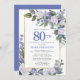 Blue White Gold Floral 80th Birthday Invitation