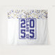 Create lasting memories with a camera and your Class of ____ Sport Typography Tapestry! White background, blue typography, customisable year, and faux blue and gold confetti header at top.