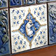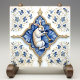 Blue White Gold Hare Mediaeval Scrollwork Ceramic Tile