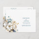 Blue White Gold Magnolia On White Wedding Postcard