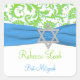 This lime green, blue, and white damask Bat Mitzvah sticker or envelope seal has a FAUX ribbon and silver Star of David brooch. It matches the Bat Mitzvah invitation shown below. The text is customisable, and so is the sticker shape and size. If you require any changes, or other matching items, please email niteowlstudio@gmail.com.