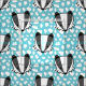 Blue fabric with cute badgers against a paint dab pattern. Perfect for your nursery projects!