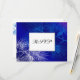 A custom winter holiday RSVP card template with an elegant pattern of pine boughs and pinecones in blue and white on an icy background of blues and violet. Click Customise It to change fonts or colours, sizes, even save your design for later.