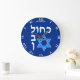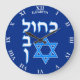 Blue White Kahol Lavan In Hebrew With David Star Large Clock