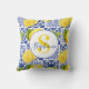 Blue White Lemon Tile Pattern Citrus Monogram Name Cushion