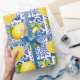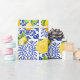 Blue White Lemon Tile Pattern Mediterranean Citrus Wrapping Paper