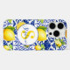 Blue White Lemon Tile Pattern Monogram Name Citrus Case-Mate iPhone Case