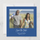 Blue White Minimal Photo QR Code Save the Date Invitation