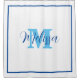 Blue White Monogram Initial Custom Name Elegant Shower Curtain