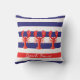 Decorate your summer home or beach house with a classic nautical pillow. Navy blue, red and white coloured horizontal stripes. With three red lobsters as decor. One single red stripe and the text: Beach House